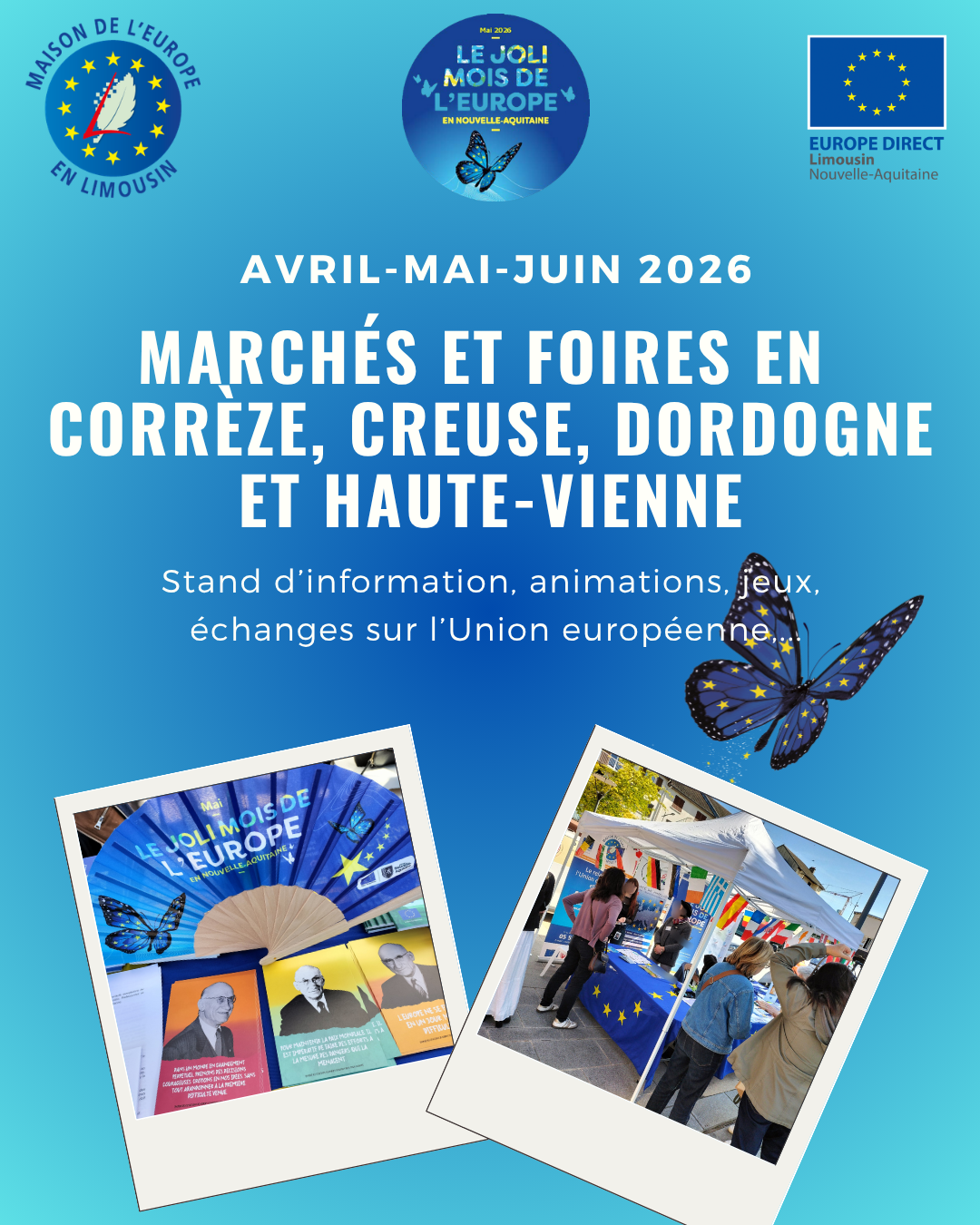 La Maison de l’Europe en Limousin a été retenue pour être le centre d’information pour les départements de la Corrèze, Creuse, Haute-Vienne et le nord de la Dordogne