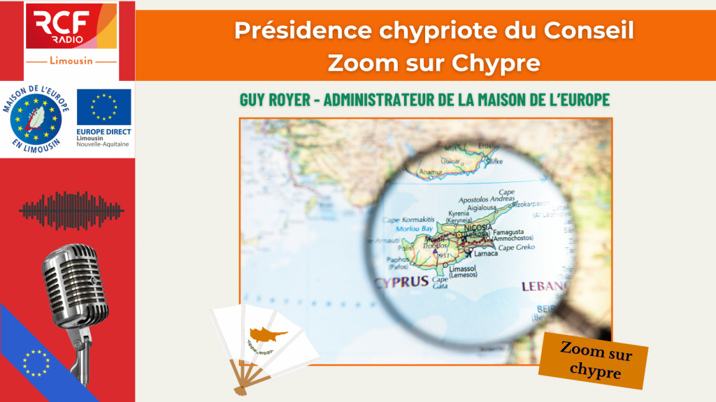 Aujourd’hui, comme une fois par semestre depuis quelques temps, nous allons découvrir plus en détail le pays qui préside actuellement le Conseil de l’UE, institution qui vote les lois au même titre que le Parlement européen. Depuis le 1er janvier 2026, c’est donc Chypre qui endosse ce rôle après avoir succédé au Danemark. Pour en savoir plus sur ce pays, la Maison de l’Europe en Limousin organise un café de l’Europe à ce sujet le mercredi 1er avril à 17h00 à la Bfm de Limoges, animé par Guy Royer, administrateur à la MDE. Pour avoir un aperçu de ce qu’il va présenter, il est avec nous aujourd’hui !